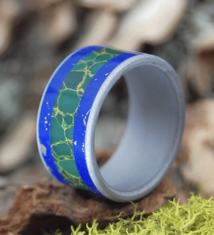 Minter & Richter Designs is the creation of husband and wife team Minter & Scott Richter. We specialize in titanium and steel wedding and commitment rings. We would love nothing more than to work with you to make the very perfect ring set to celebrate your union. All our pieces are unique and individually hand-crafted from a single billet of pure titanium by Scott Richter in Boston MA. But even before they take form, the rings are constructed in our customers imaginations. We enjoy the process of making you the very ring that suits you, so please contact us with your requests and ideas. From our fingers to yours . . .